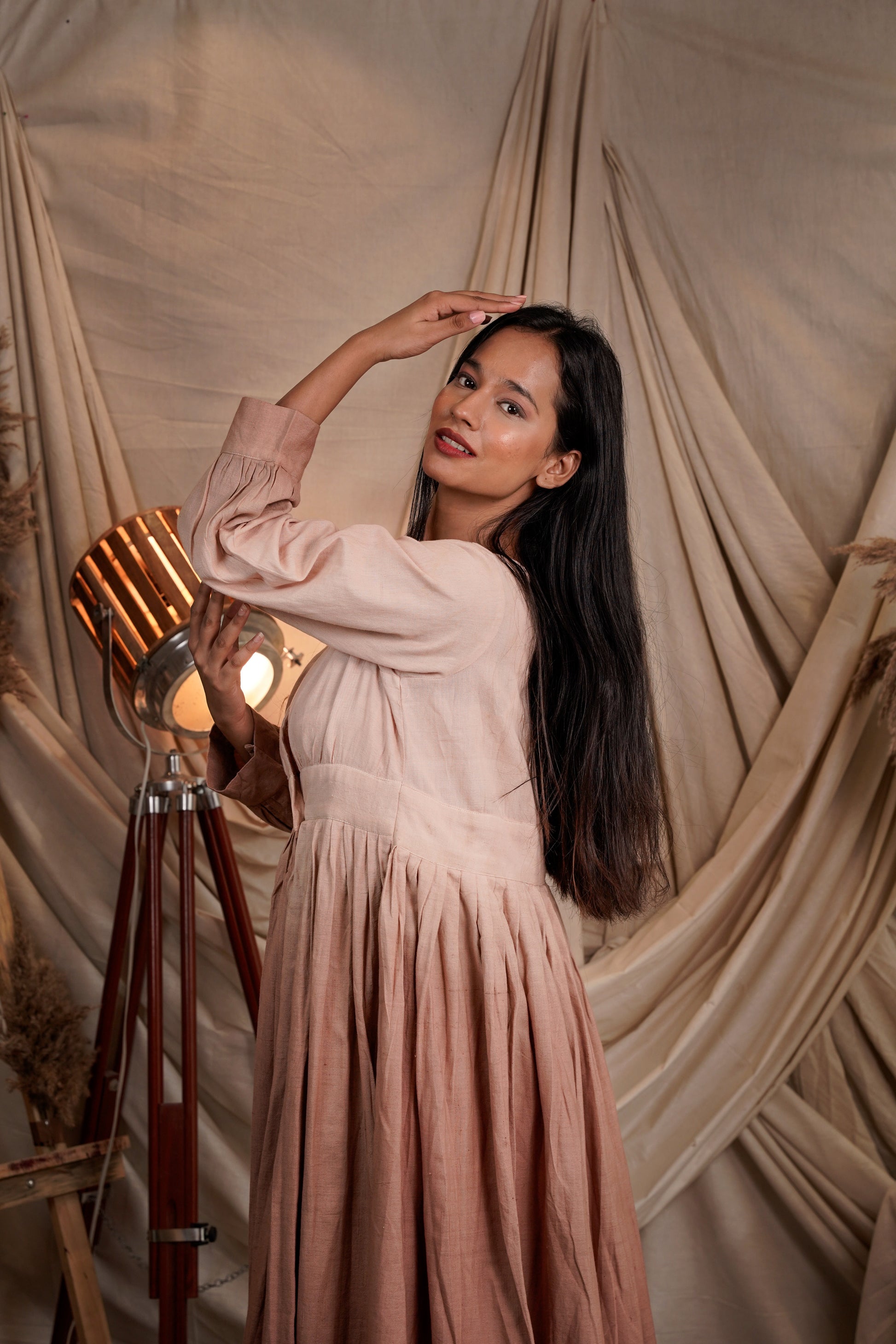 The earthy elegance is long jacket made in hand woven khadi and ombre dyed in the shades of brown. This ensemble is inspired by the sheer beauty in simplicity and the soothing earthy tones of soil. the ensemble can be styled as an over layer jacket or as a dress as long well. Earthy elegance is a perfect silhouette and shade for all age groups who love a minimal effortless layering.