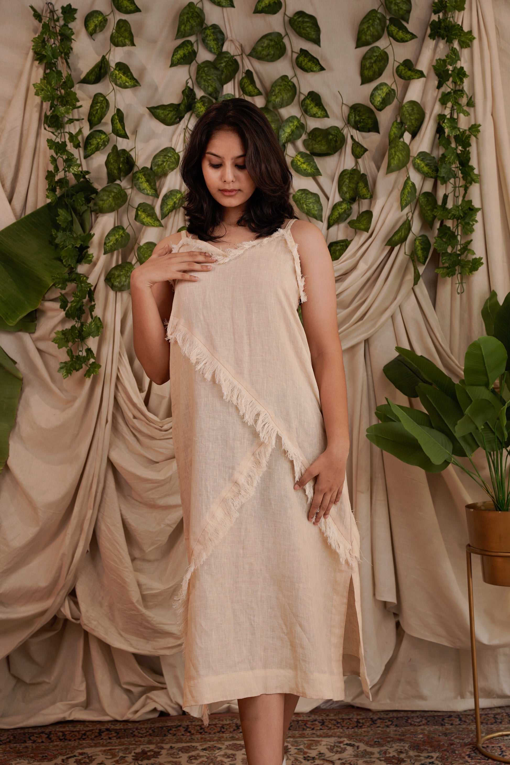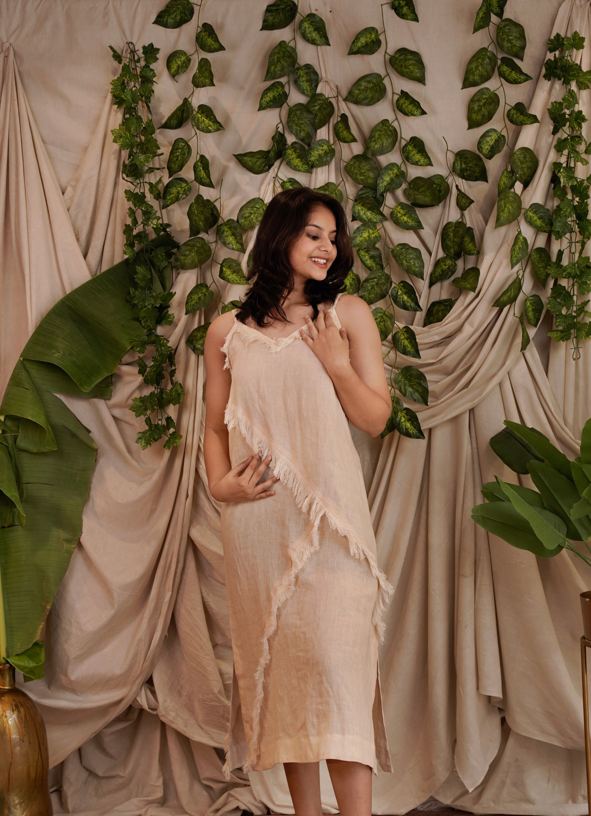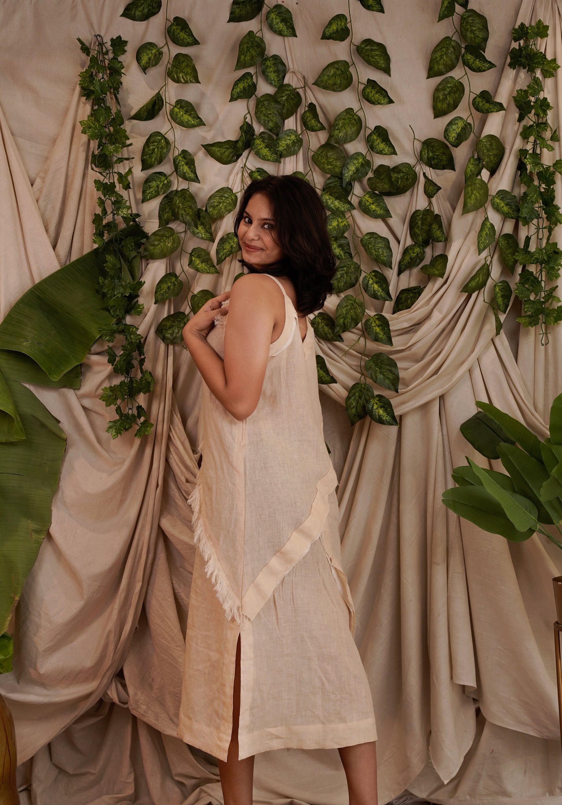 Experience the allure of effortless style with our Sand Dunes linen dress. Crafted from pure linen, this dress features delicate hand-crafted fringes made from linen thread, adding a unique touch to its elegant design. The flowing silhouette and V-neckline create a flattering, relaxed fit, perfect for warm, breezy days. Whether you're walking along the beach or attending a casual gathering, the Sand Dunes dress embodies natural beauty and sophistication.