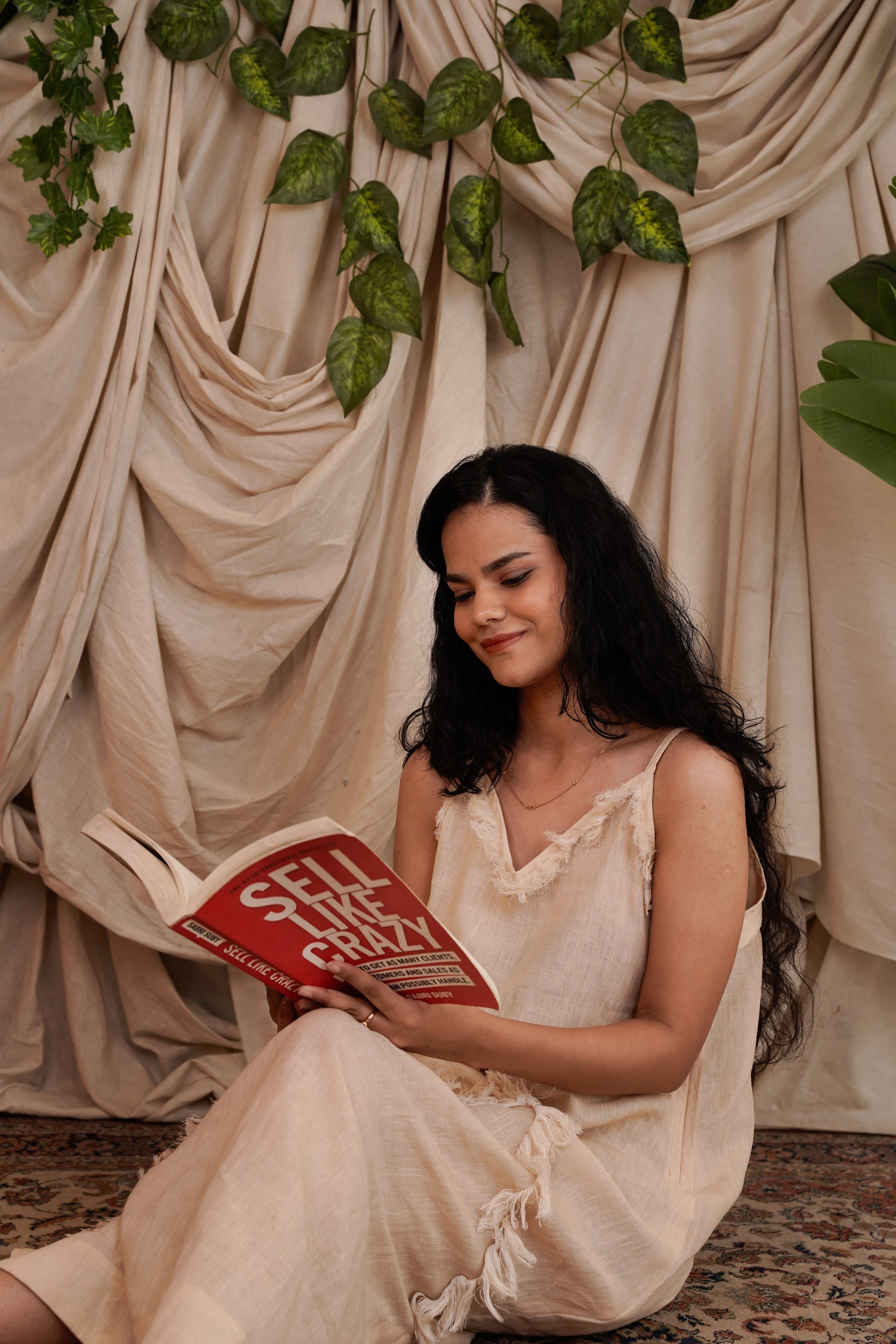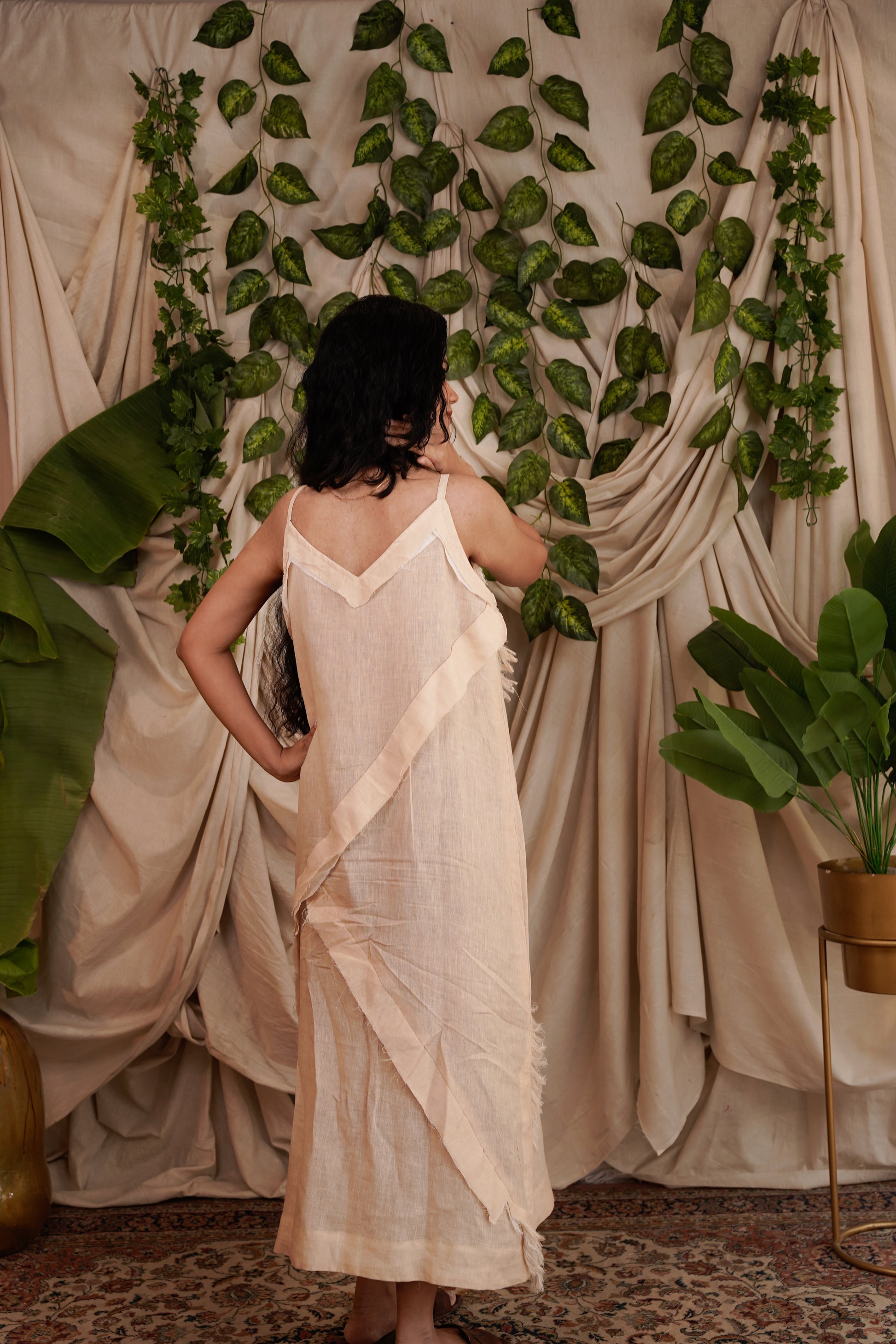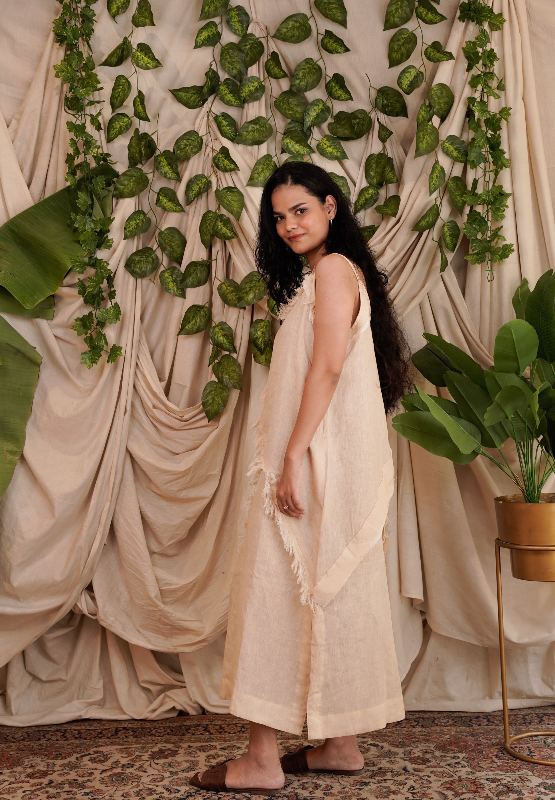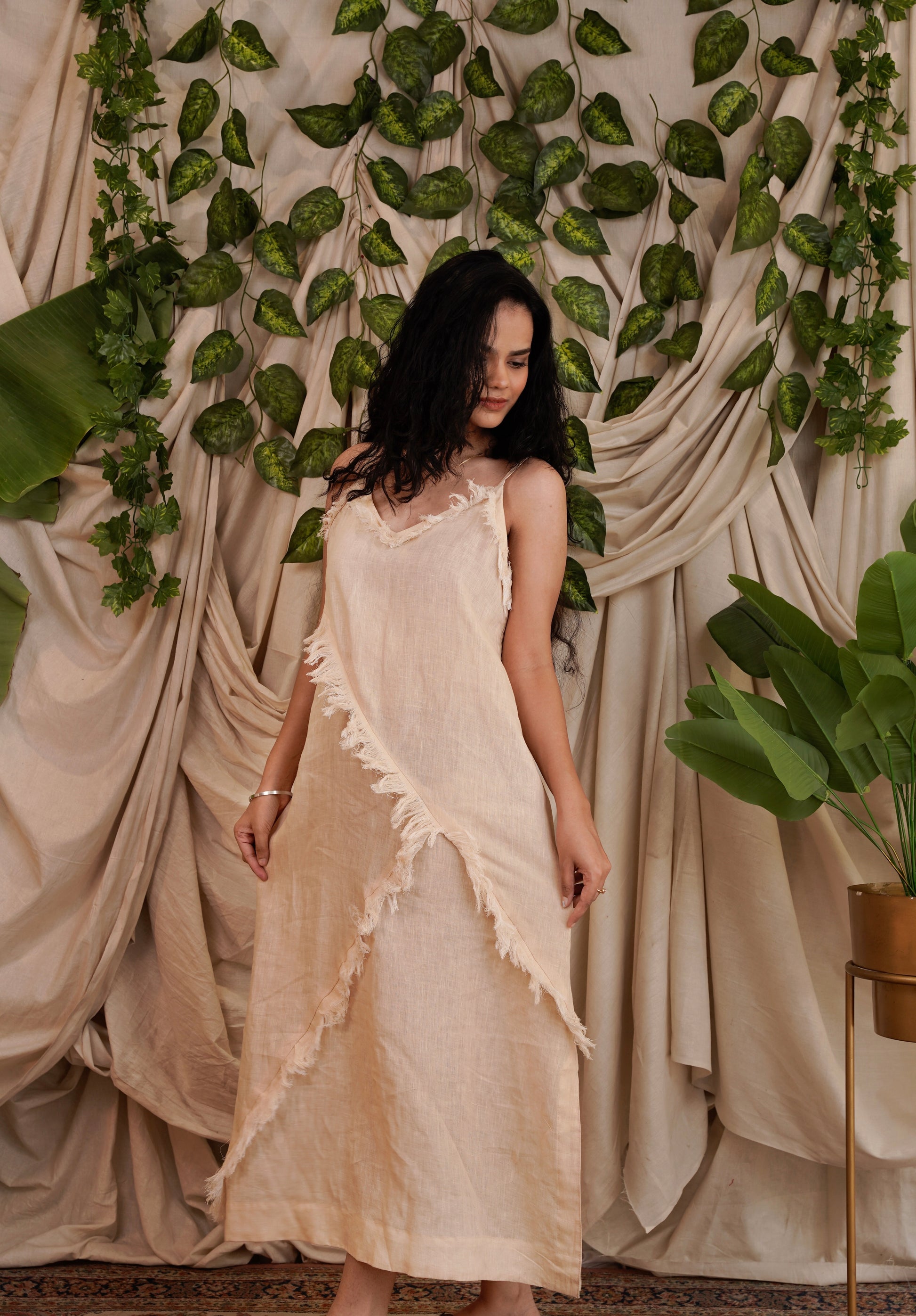 Experience the allure of effortless style with our Sand Dunes linen dress. Crafted from pure linen, this dress features delicate hand-crafted fringes made from linen thread, adding a unique touch to its elegant design. The flowing silhouette and V-neckline create a flattering, relaxed fit, perfect for warm, breezy days. Whether you're walking along the beach or attending a casual gathering, the Sand Dunes dress embodies natural beauty and sophistication.